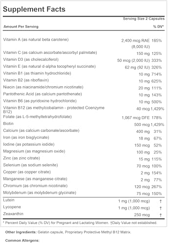 - PRENATAL WITH FOLATE, SUPERIOR 100% PURE BIO-ACTIVE INGREDIENTS – We set out to create the best prenatal vitamins for women, with Vitamin A, Vitamin C, Vitamin D, Vitamin E, B-Complex Vitamins, Calcium, Iron, Iodine, Magnesium, Zinc, Selenium, Copper, Manganese, Chromium, Molybdenum, Lutein, Lycopene and Zeaxanthin. Our pre natal multivitamin for women is dairy-free, gluten-free, & contains NO soy, yeast, wheat, sodium, salt, sugar, fat, color, preservative, common allergens or additives