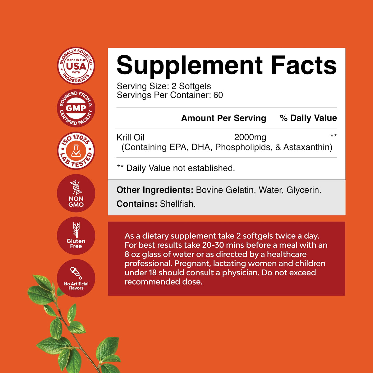 Antarctic Krill Oil 2000mg Softgels Per Serving - Omega 3 Krill Oil Supplement