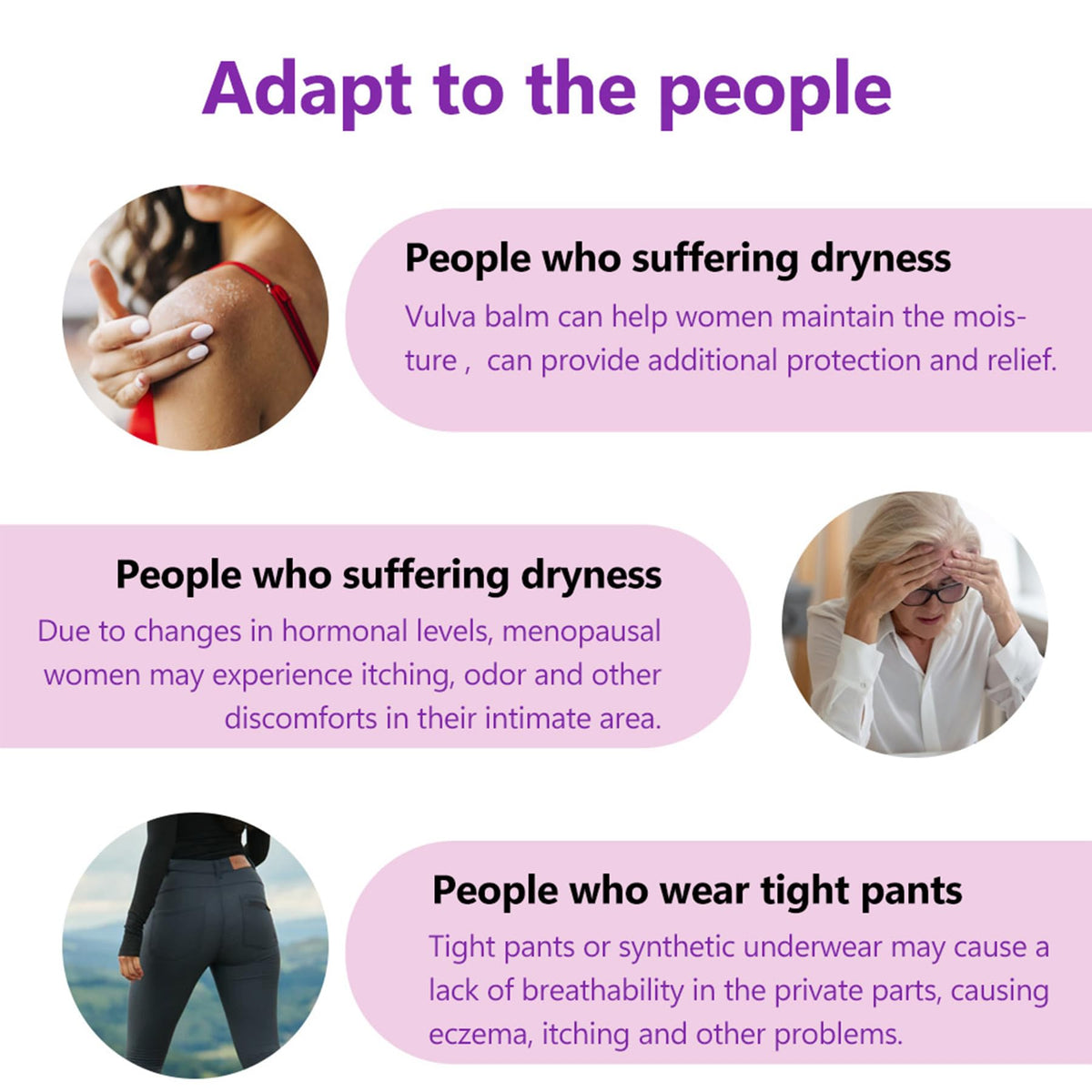 - ==Immediate Relief:== Say farewell to dryness, redness, itching, and burning with Aromlife's immediate relief formula. Whether it's caused by menopause, hormonal changes, friction, chemical irritation, or shaving, this vulva balm offers quick and effective relief. Embrace the joy of supple skin and a heightened sense of comfort in your most intimate moments
