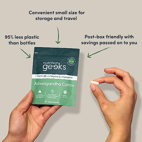 - ✉️ 💲 Letterbox Friendly and Great Value for Money ✉️ 💲 Nutrition Geeks' supplements come in flat pack packaging, saving on costly postage and storage fees associated with other bottled ashwagandha gummies, ashwagandha tablets or organic ashwagandha tea. Keep calm and remember it's Ashwagandha, not ashwaganda supplement, ashwaghanda, or aswaganda!