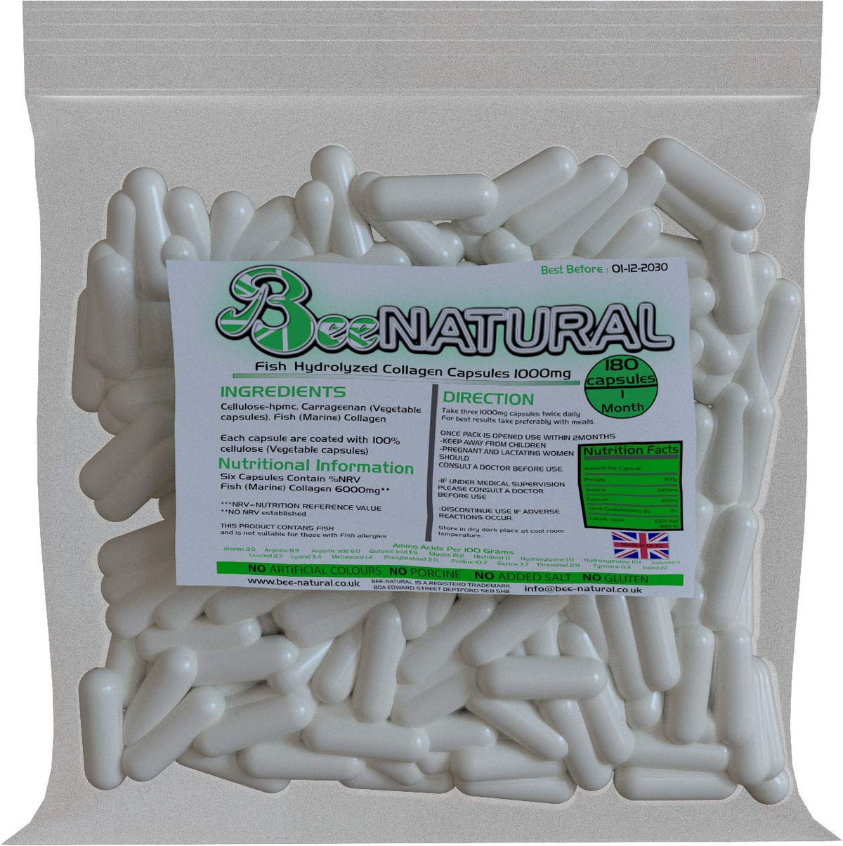 Bee-natural Pure Marine Hydrolyzed Collagen 1000mg 180 Capsules (1 Month Supply)
