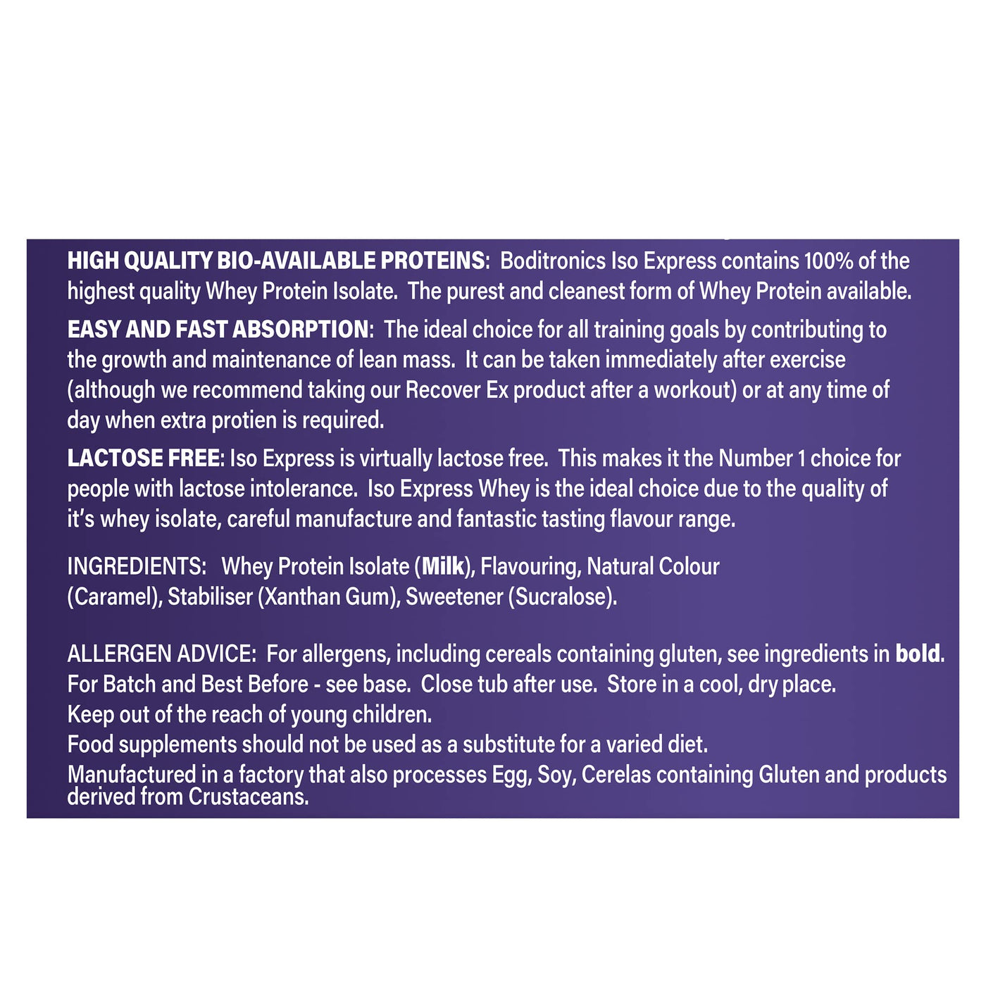 Boditronics 1.5 kg Iso Express Whey 100% Whey Isolate Protein Powder with Occurring Amino Acid