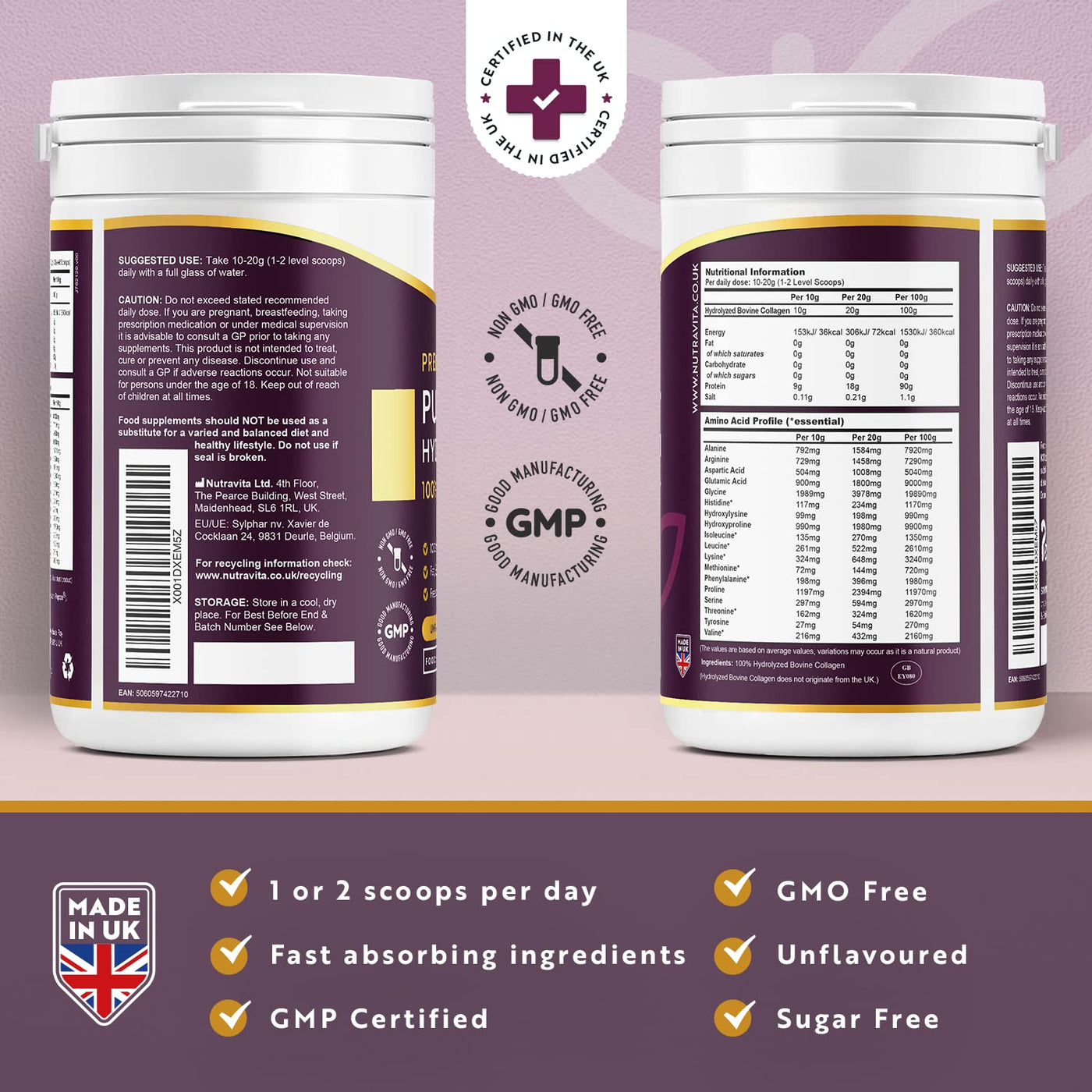 Collagen Powder 500g - Premium Gold Standard Bovine- 50 Servings - Collagen Peptides Supplement