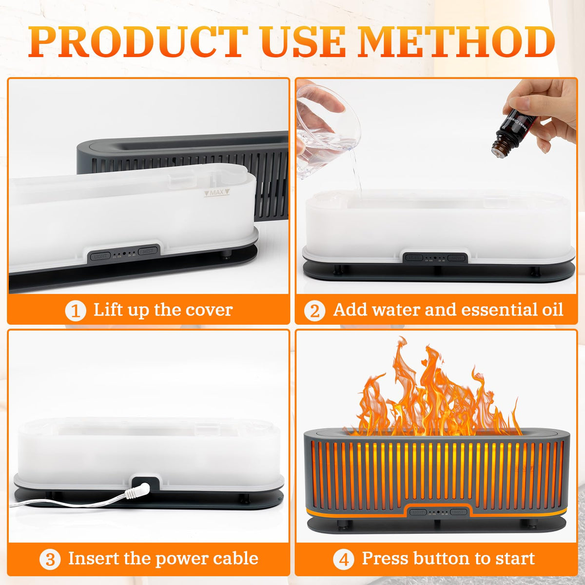 Comfynest Colorful Flame Fire Fireplace Diffuser with 6 Essential Oils Set, Ultrasonic 200ml Essential Oil