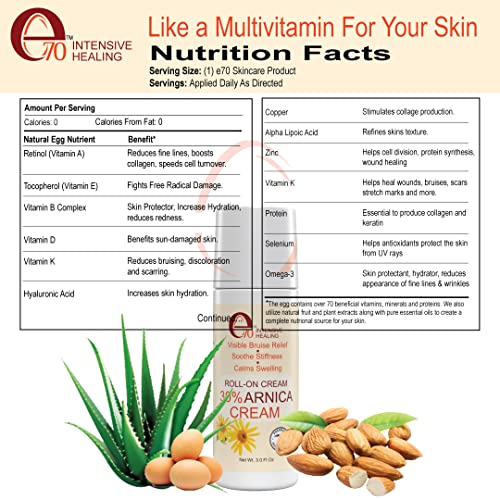 e70 Arnica Cream & Roll-On for Visible Bruise Relief, soothes Stiffness, Calms Swelling Formula