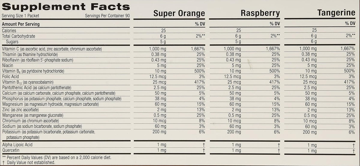 Emergen-C 1,000 mg Vitamin C Dietary Supplement Drink Mix, Super Orange/Raspberry