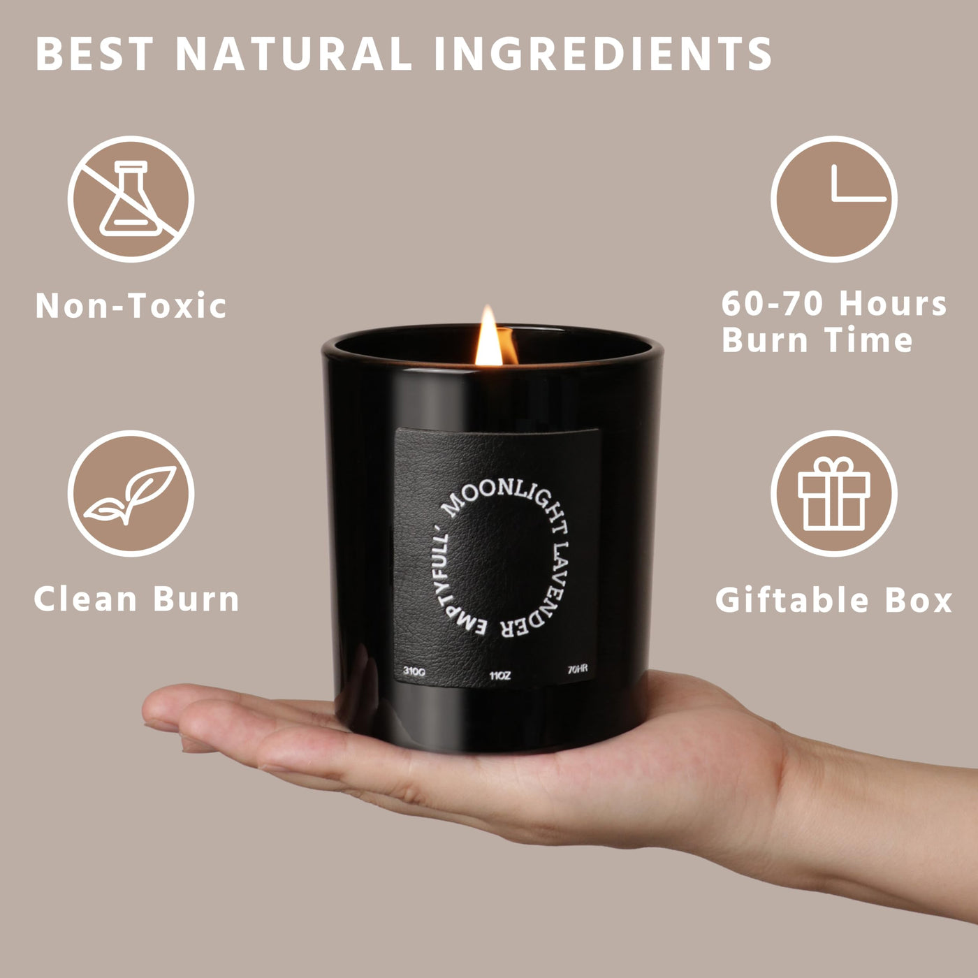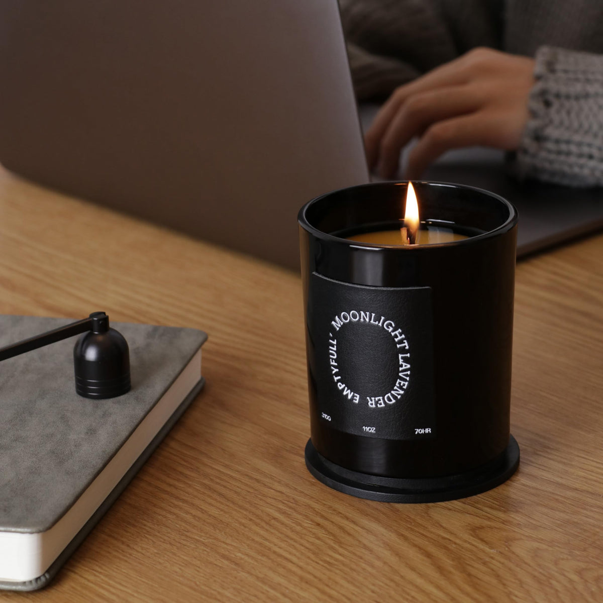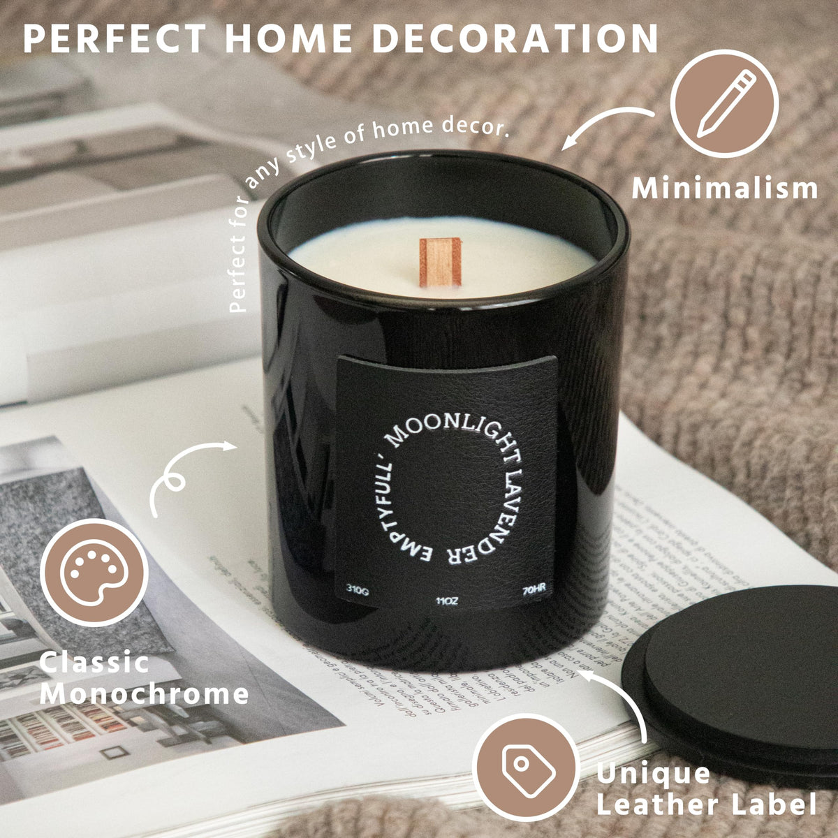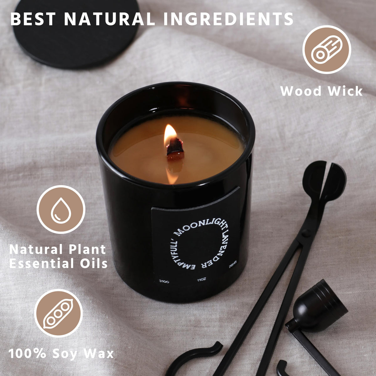 EMPTYFULL Lavender Scented Candles, Wood Wick, 11 oz Large Candle, Natural Soy Candles