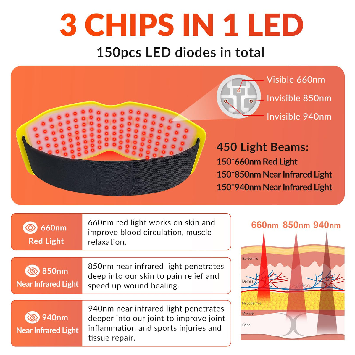 Fimem Red Light Therapy Belt 660nm 850nm 940nm, Red Light Therapy Device for Back, Infrared Light Therapy