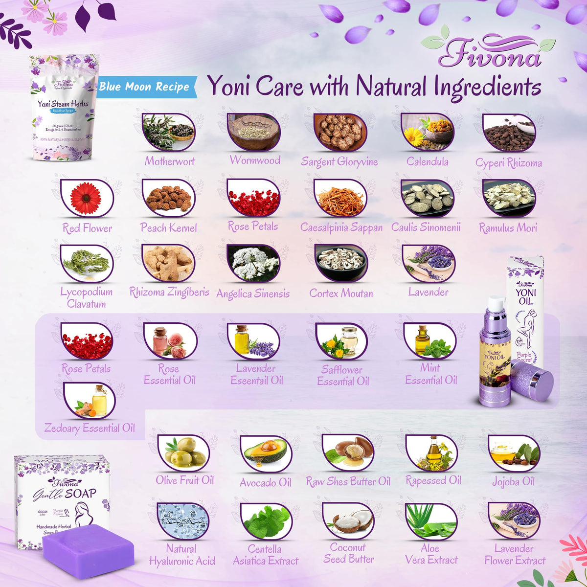 FIVONA Yoni Care Kit 3 in 1 - pH Balanced Natural Vaginal Oil 30 ml, Organic Herbal Soap 5.3 oz