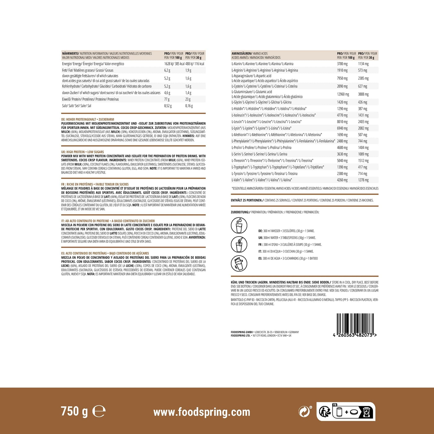foodspring Whey Protein Powder Coconut – with 23g Protein for Muscle Building, Perfect Solubility, Made from Pasture Milk, Rich in BCAAs & EAAs - 750g