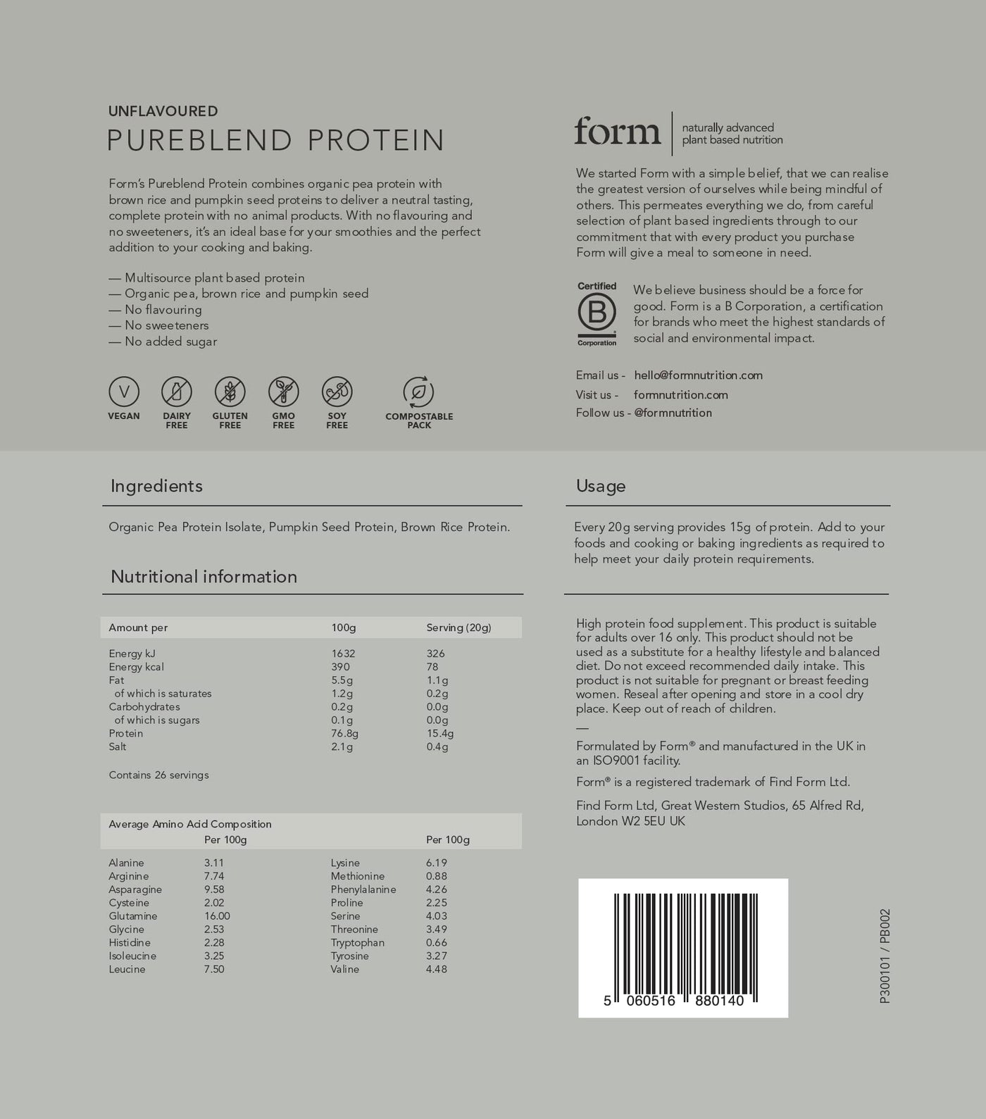 Form Pureblend Protein - Unflavoured and Unsweetened Vegan Protein Powder