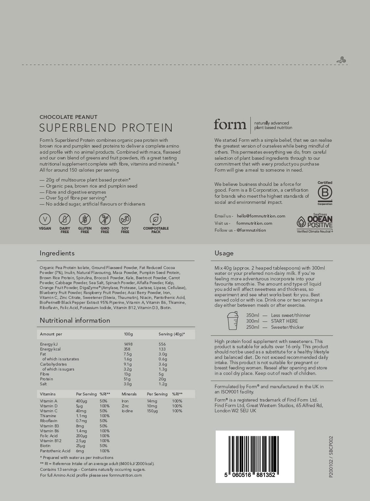 Form Superblend Protein - Vegan Protein Powder with Superfoods, Vitamins and Minerals