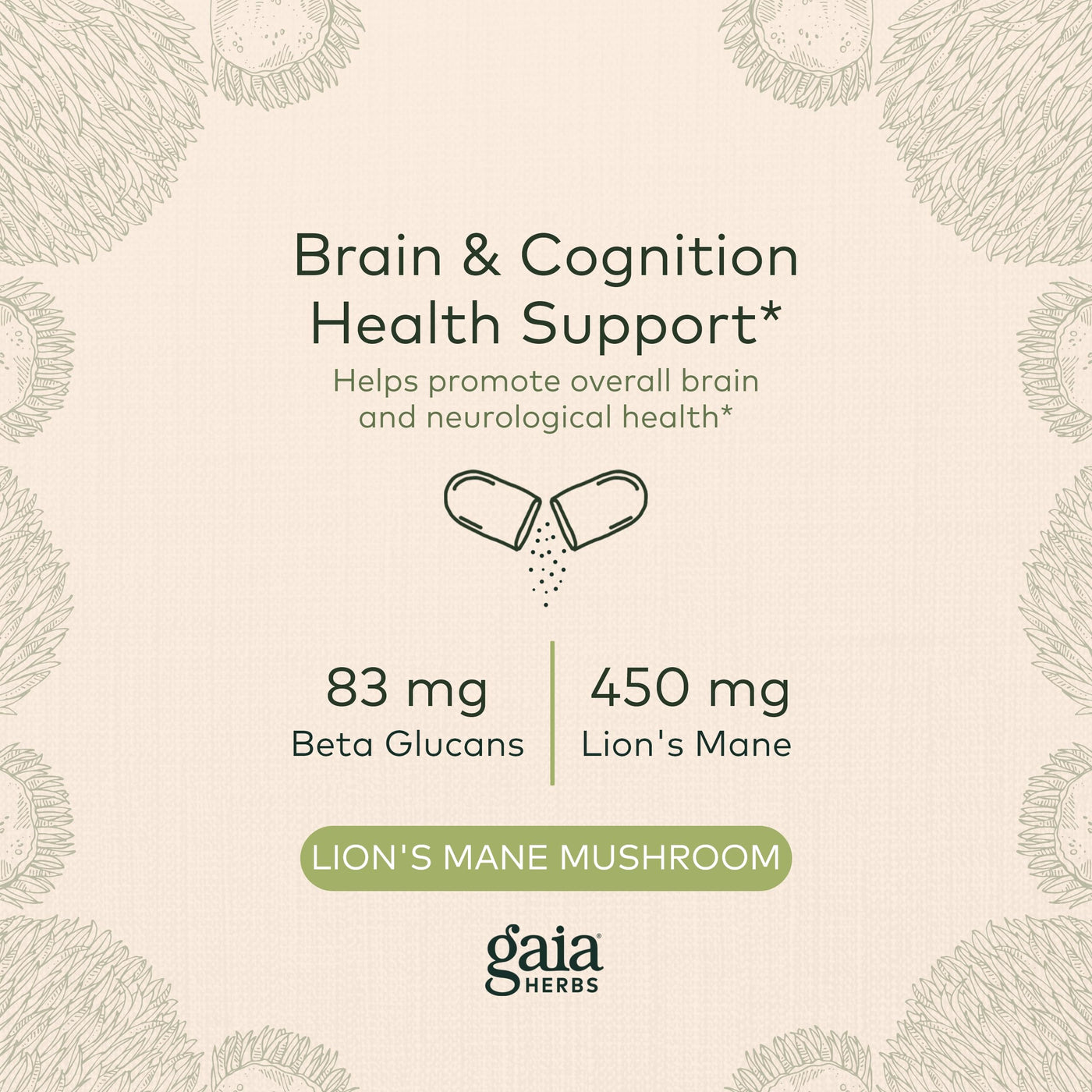 Gaia Herbs Organic Lion’s Mane Mushroom - Brain and Nerve Support Supplement