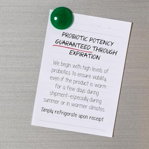 - PROBIOTIC POTENCY GUARANTEED THROUGH EXPIRATION: We begin with high levels of probiotics to ensure viability, even if the product is warm for a few days during shipment—especially during summer or in warmer climates; simply refrigerate upon receipt