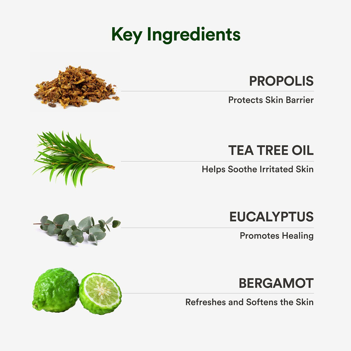 Key Ingredients: Propolis, Eucalyptus Oil, Bergamot Oil, Tea Tree Oil