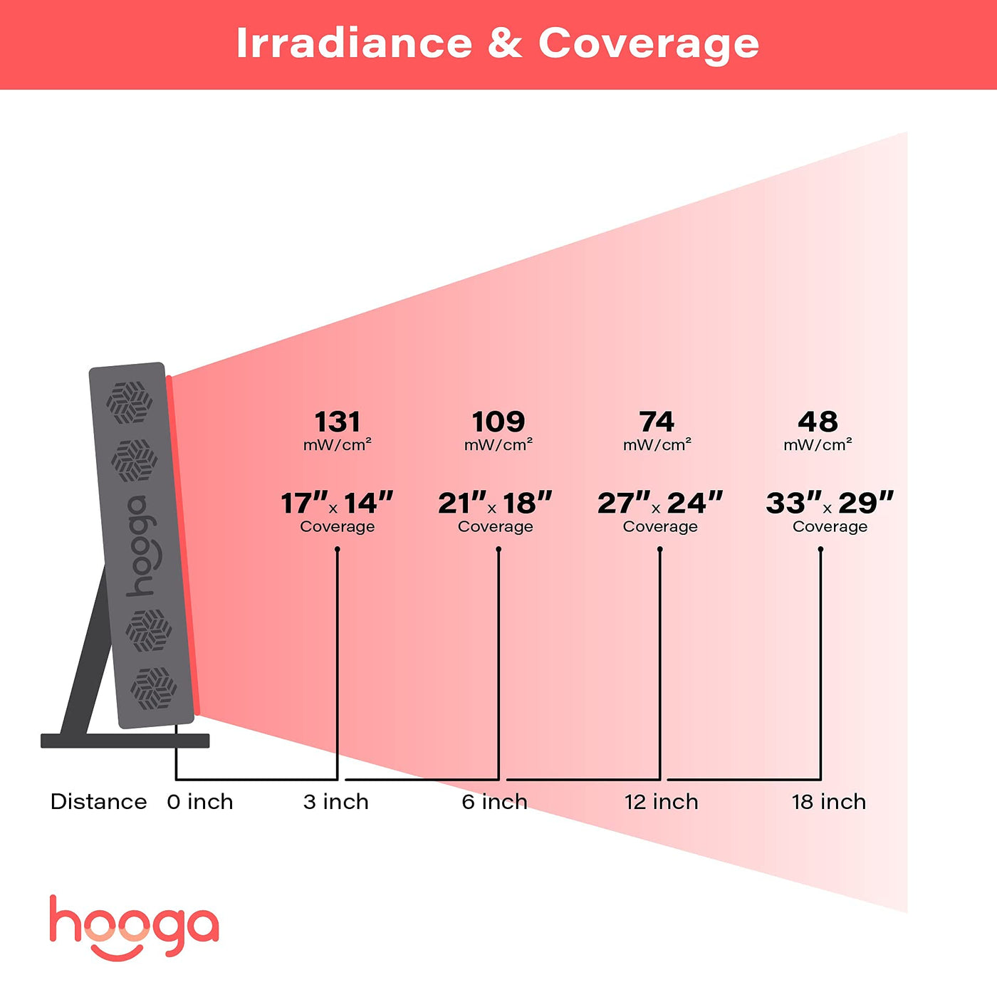 Hooga Red Light Therapy 660nm 850nm Red Near Infrared, Dual Chip Flicker Free LEDs, PRO Series
