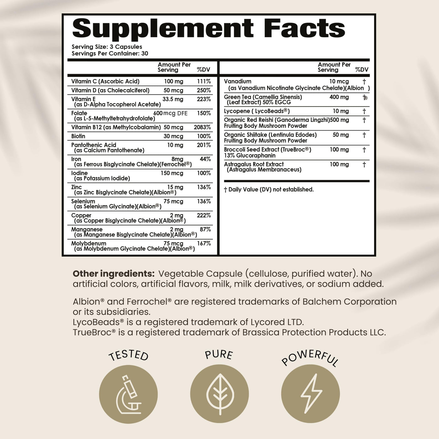 - BACKED BY SCIENCE: Studies have shown that replenishing certain nutrients that are low or absent in your body can support the immune system’s normal defenses. The ingredients of this unique, high-potency nutrient blend are correlated to prevent loss of healthy immune function and better respond to treatment and medications.