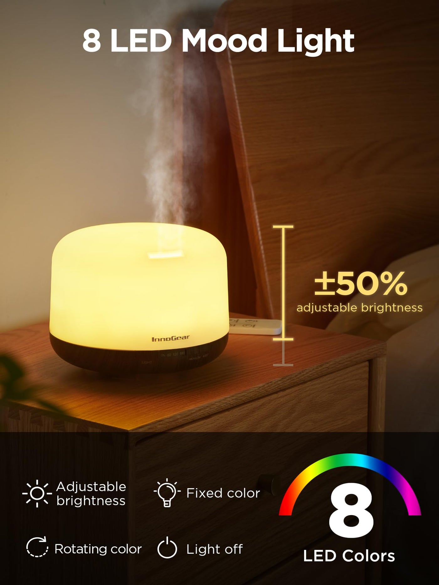 InnoGear 500ml Essential Oil Diffuser with Remote Control, Premium Ultrasonic Aromatherapy