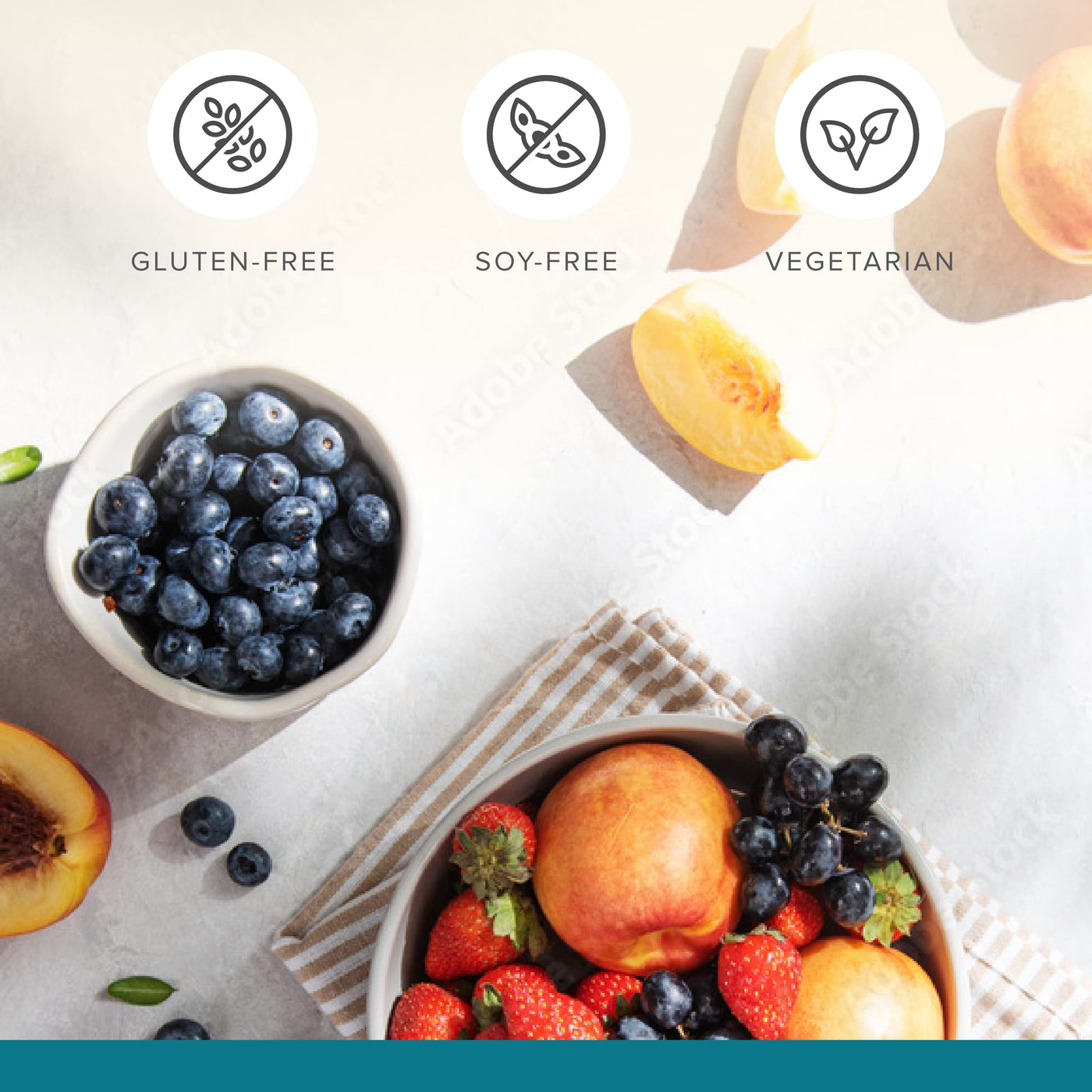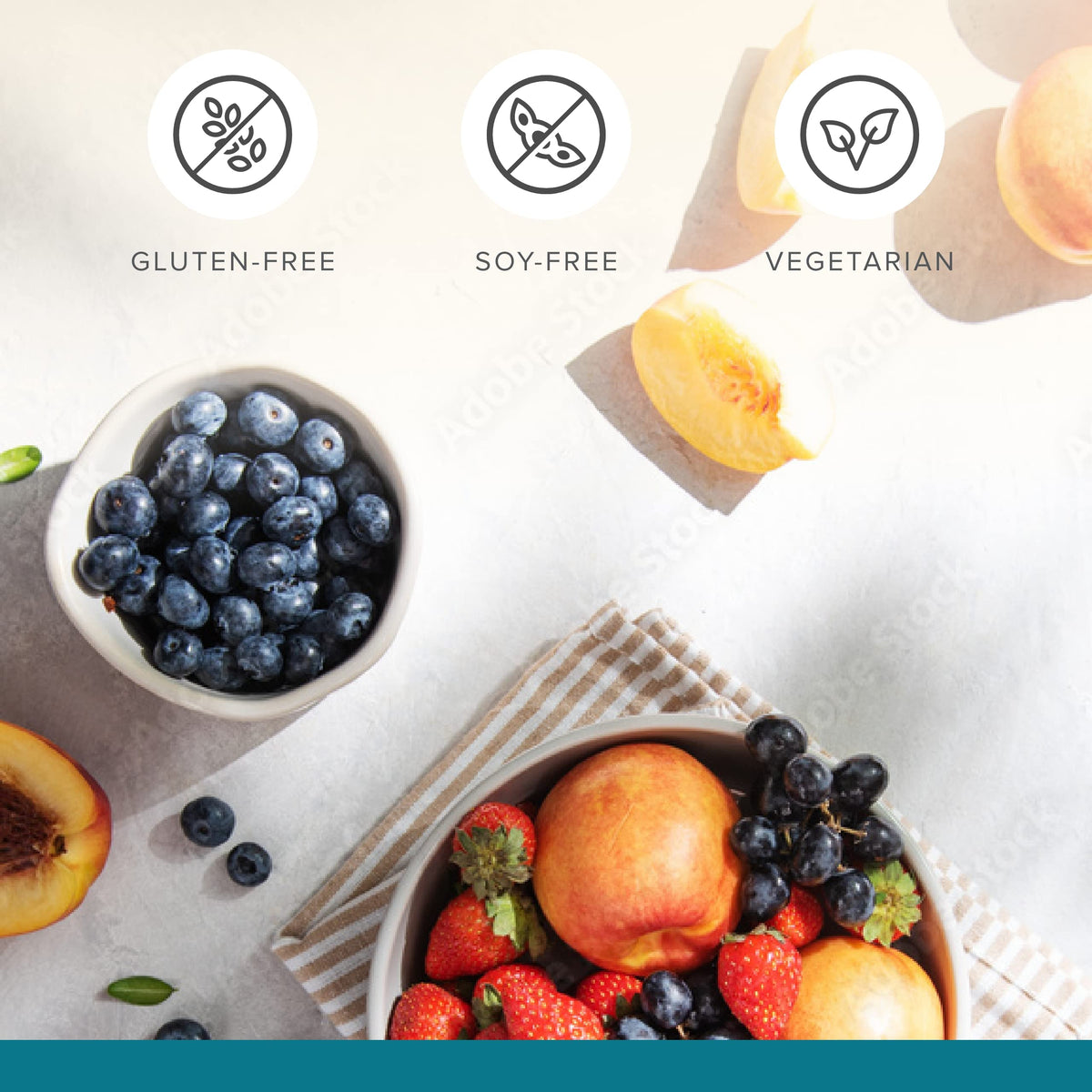 - Allergen-Friendly Fruit Supplement: This powder supplement is gluten-free, soy-free, non-GMO, and vegan