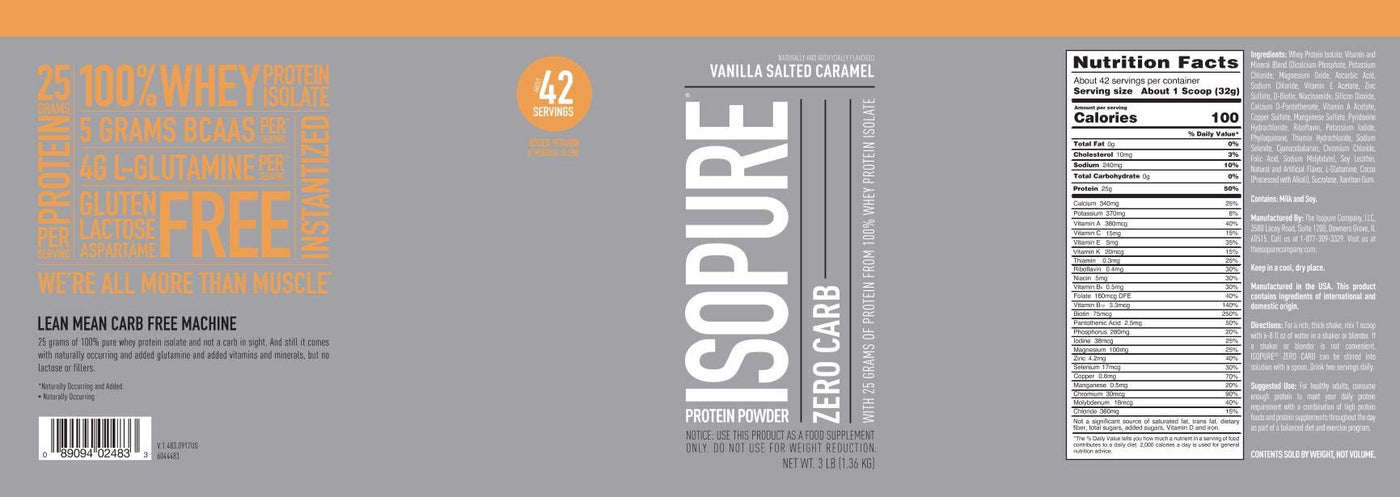 Isopure Protein Powder, Zero Carb Whey Isolate with Vitamin C & Zinc for Immune Support