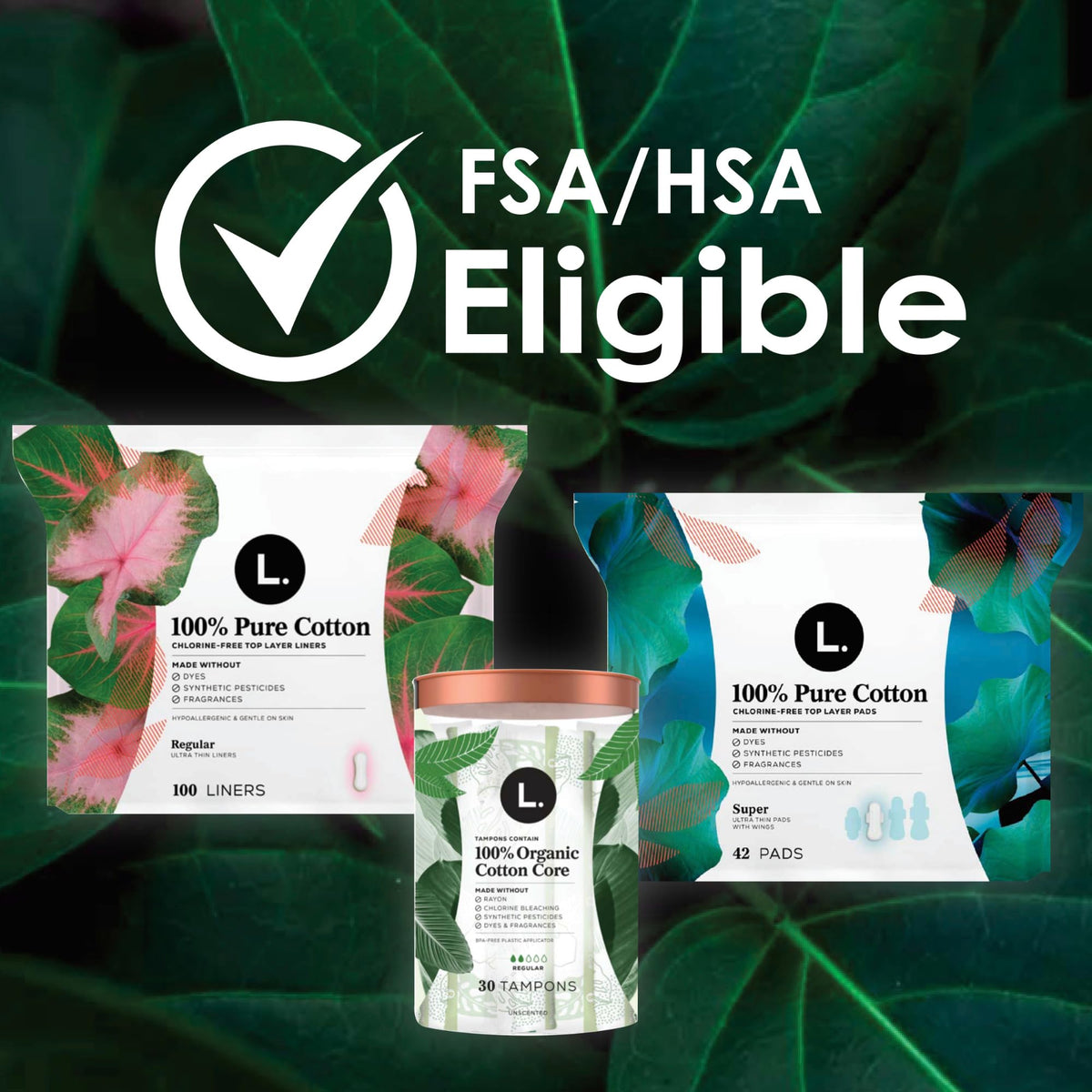 L. Organic Cotton Tampons - Regular 42 Count x 2 Packs (84 Count Total) (Packaging May Vary)