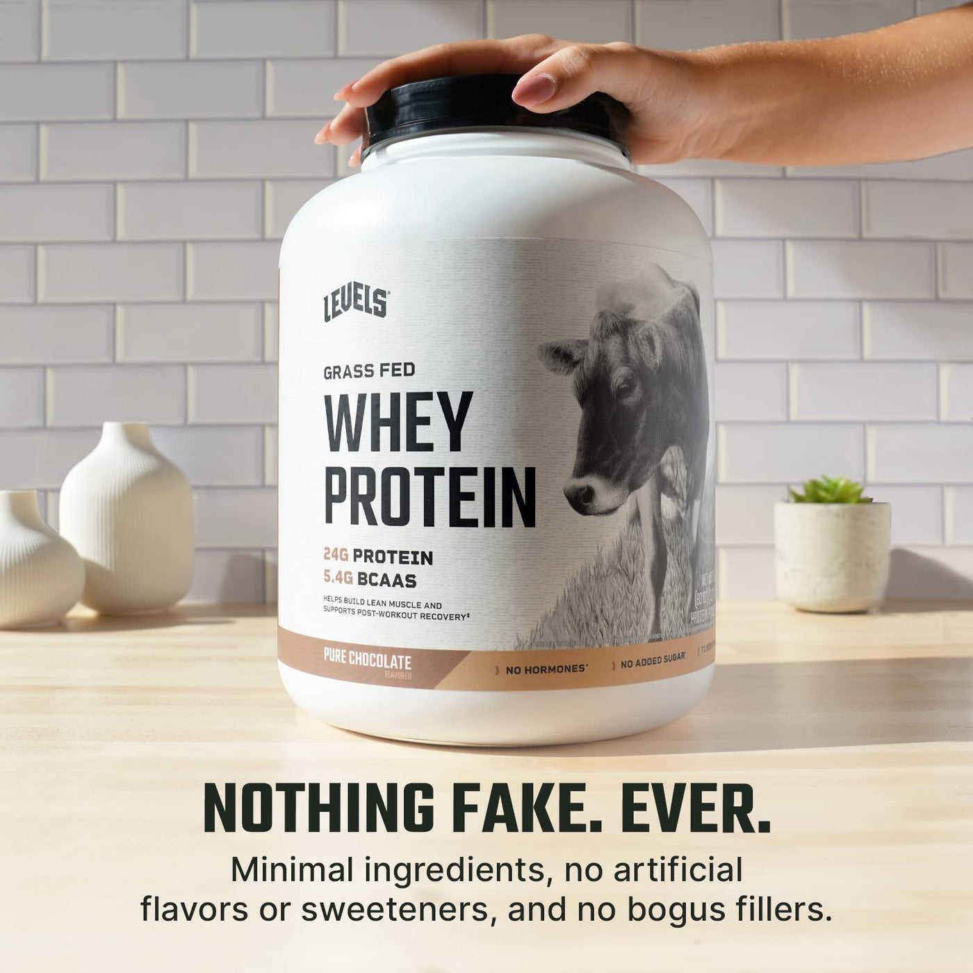 - LEVELS WHEY PROTEIN: Each scoop of Levels Pure Chocolate Whey contains 24g Protein, 5.4g BCAAs (branched-chain amino acids), and no added sugars. Trusted by athletes, fitness enthusiasts and daily grinders everywhere, our whey is crafted for everyone’s lifestyle.