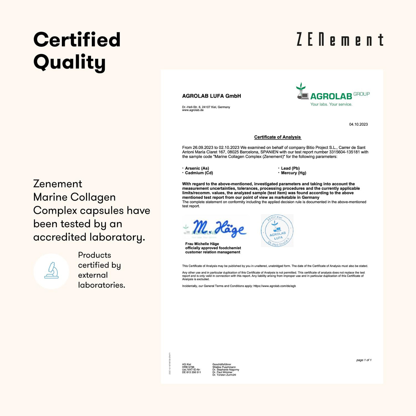 - 🔝 THE MOST COMPLETE FORMULA ON THE MARKET: Each capsule of our Marine Collagen Complex contains Hyaluronic Acid, CoQ10, Vitamins C & E and Zinc. We offer 180 capsules, 3 months supply.