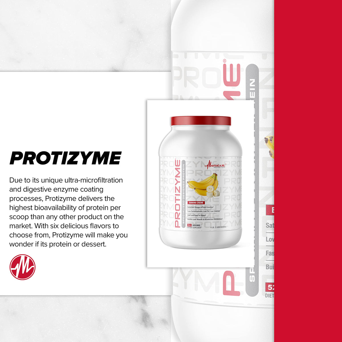 - WHAT IT DOES FOR YOU: Protizyme is physician formulated & designed for healthy Men or Women who are on-the-go professionals, athletes, students and competitors alike, who need and easy and quick dissolving powder that makes delicious milkshakes and can be used in baking to make high protein cookies, pancakes, muffins, etc. Available in 5 delicious flavors…with 2lb or 5lb sizes to choose from…delivering 26 to 52 individual servings.
