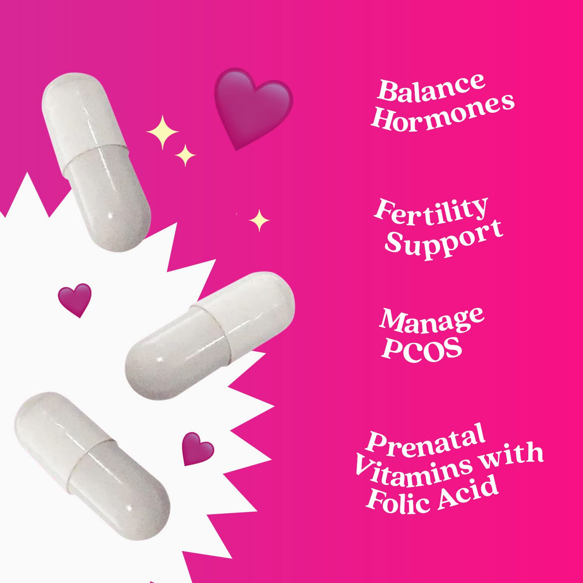 Myo-Inositol & D-Chiro Inositol Capsules with Folic Acid for PCOS | Prenatal Fertility