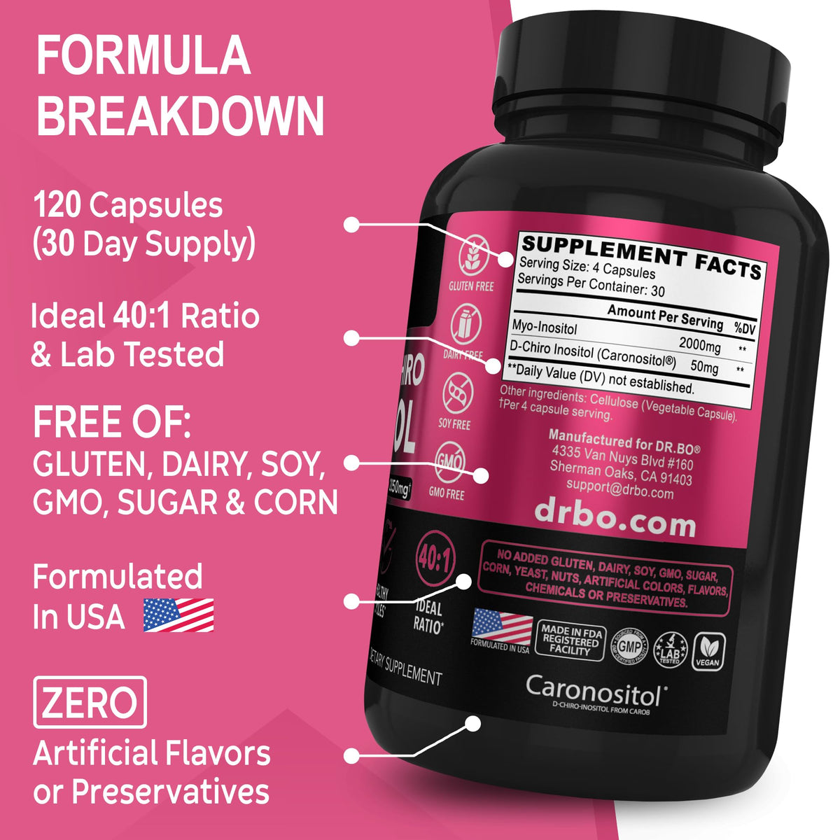 Myo-Inositol & D-Chiro Inositol Supplement Capsules - 40:1 Ratio Hormone Balance