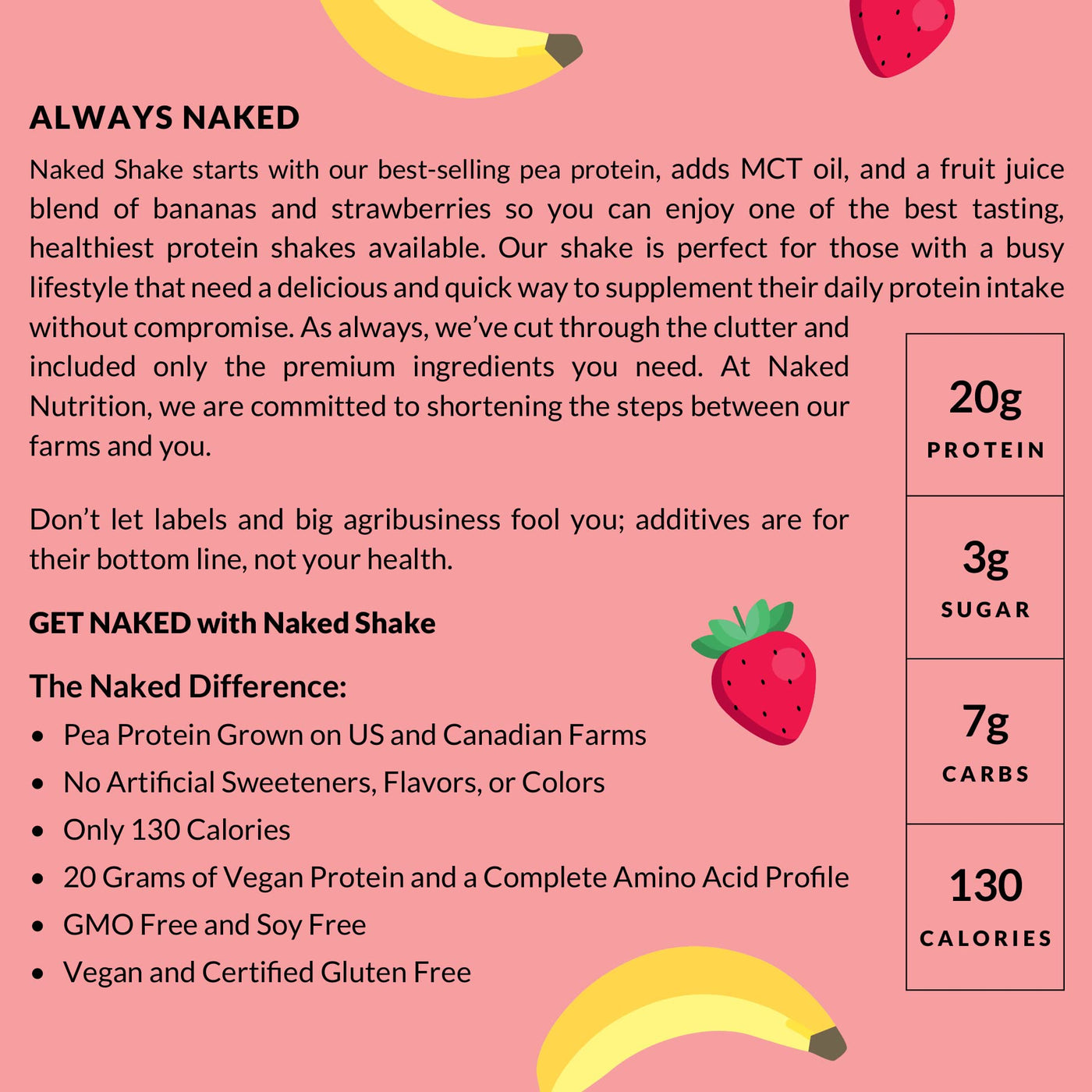NAKED nutrition Naked Shake - Vegan Protein Powder, Strawberry Banana - Flavored Plant
