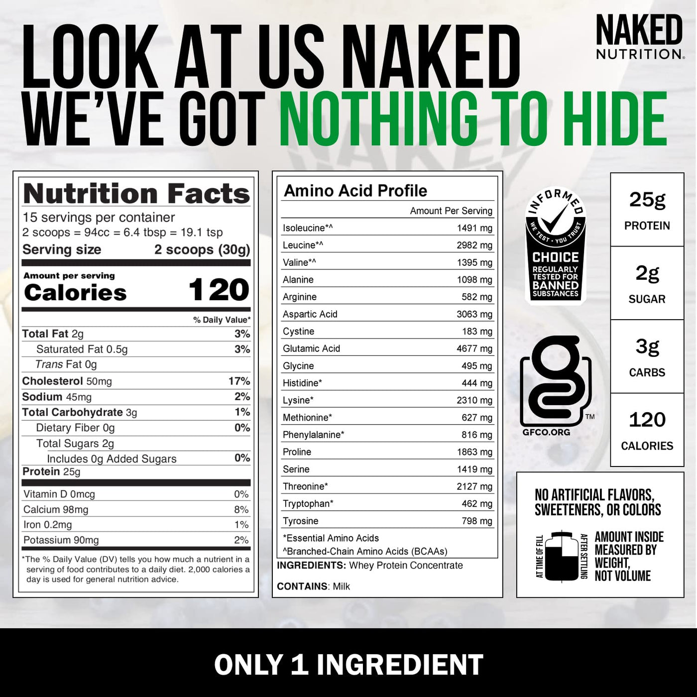 - ONLY ONE INGREDIENT: 100% Grass Fed Pure Whey Protein with zero additives. Naked Whey no artificial sweeteners, flavors, or colors and is GMO-Free, No rBGH or rBST, Soy Free and Gluten-Free.