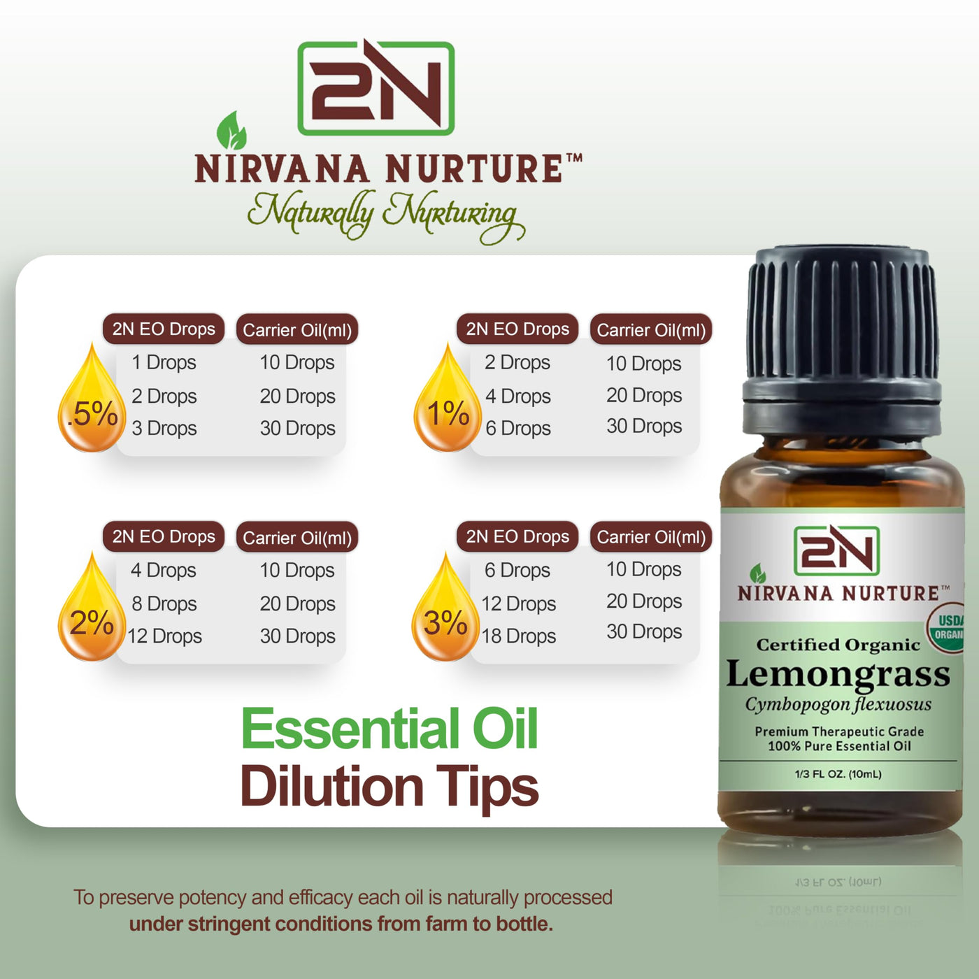 Nirvana Nurture Lemongrass Essential Oil USDA Certified Organic 100% Pure Premium Therapeutic Grade
