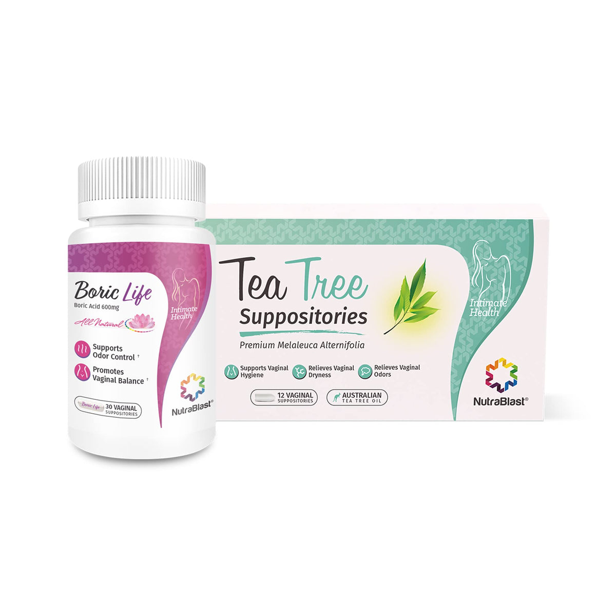 NutraBlast Boric Acid Vaginal Suppositories 600mg (30 Count) w/Tea Tree Oil Suppositories (12 Count)