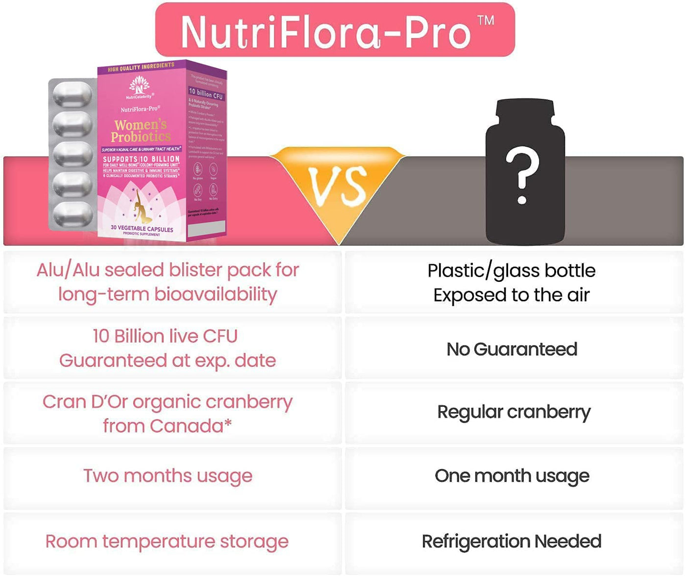 NutriCelebrity NutriFlora-Pro Probiotics for Women, Vaginal, Urinary Health, Immune System Digestive