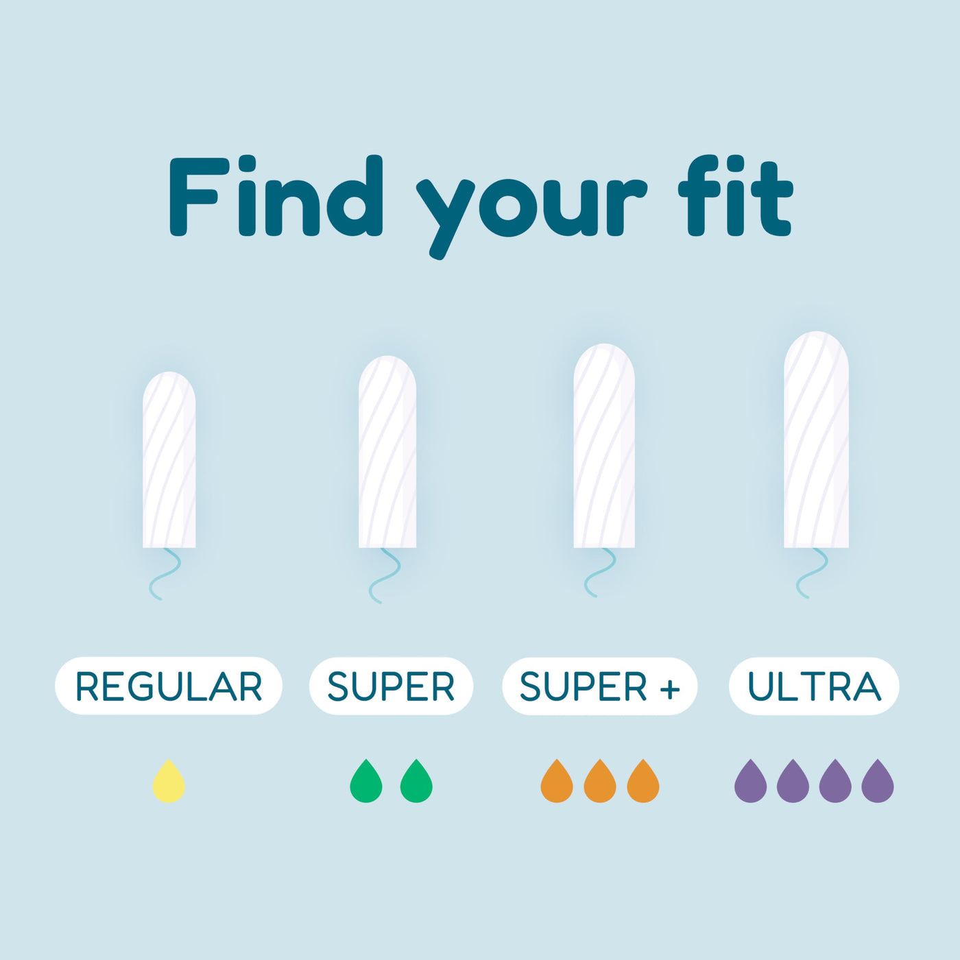 - FIND YOUR FIT – Available in Regular, Super, Super+, and Ultra absorbencies to fit your flow. Try our o.b. tampons multipack for a variety of absorbencies to protect you on your period whether it's light or heavy!