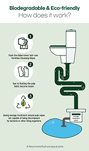 Oldam Feminine Flushable Wipes: 100% Vegan, pH-Balanced, Moisturizers & Essential Oils, Sensitive Skin