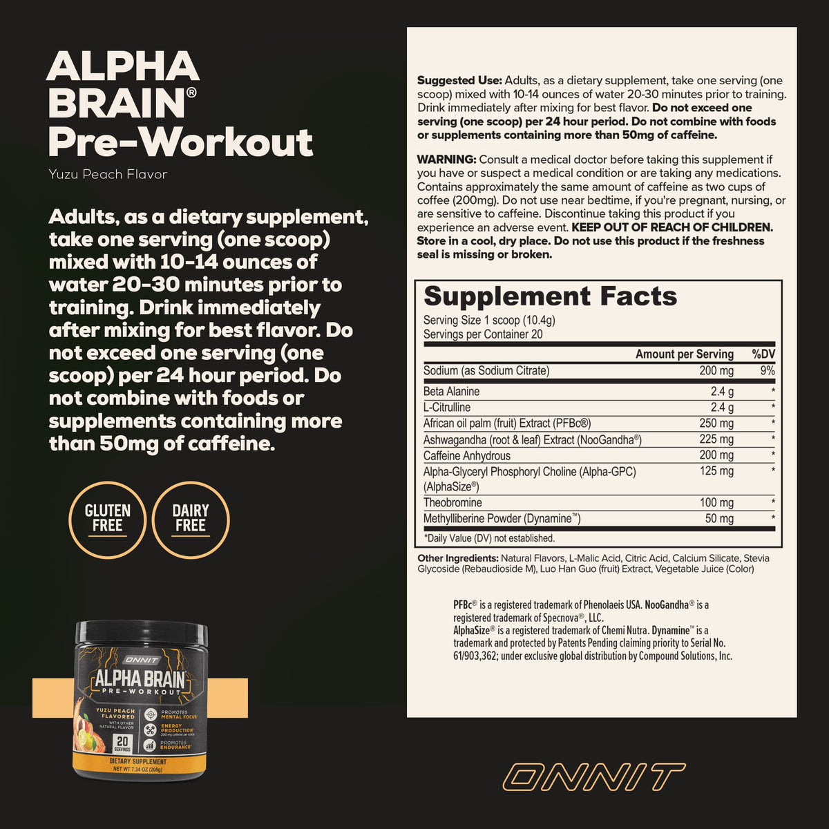 ONNIT Alpha Brain Pre-Workout - Yuzu Peach (20 Serving Tub)