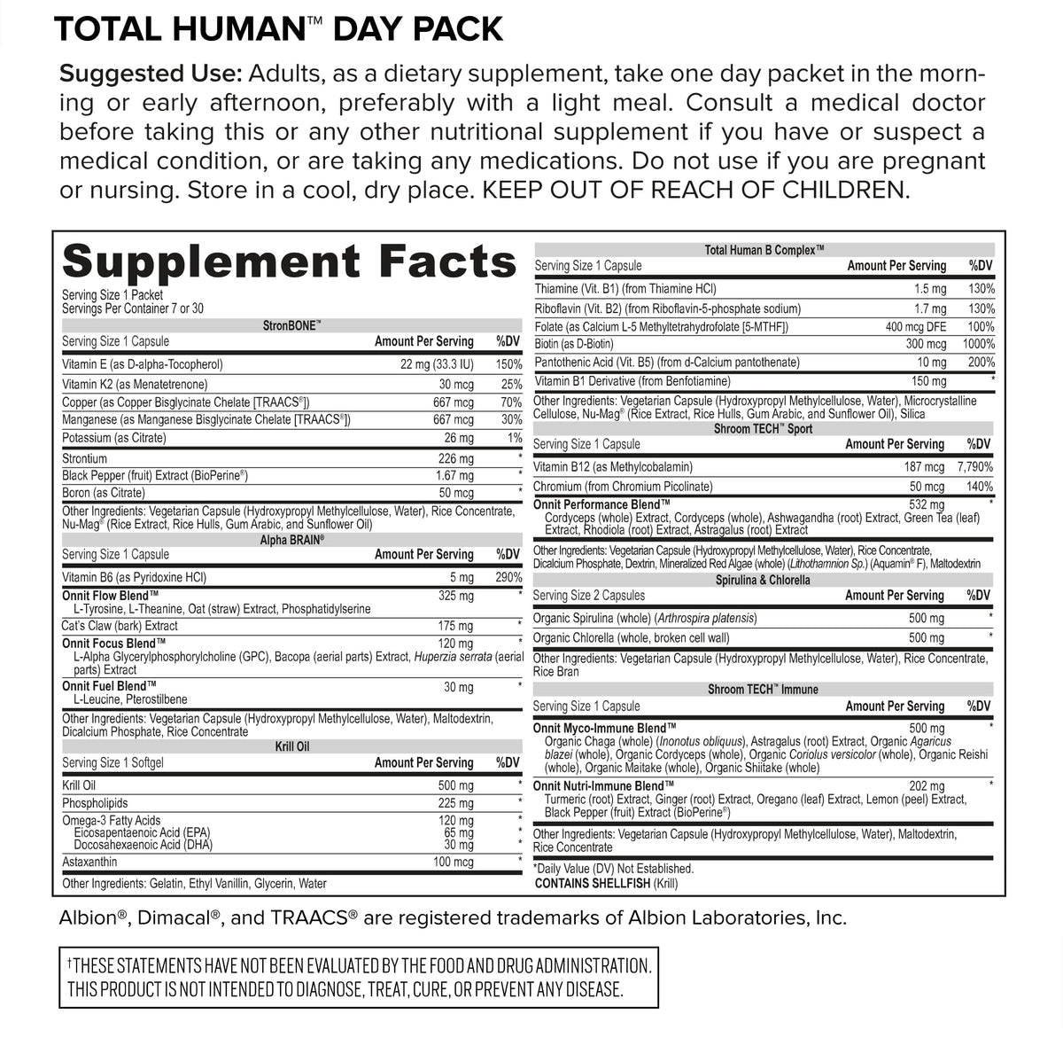 - Provide Focus and Energy: The Day Pack vitamins for men and women help support focus, energy, endurance, and more with Alpha BRAIN for memory, Stron Bone for bone strength, and Active B Complete for cognitive performance so you can thrive every day.