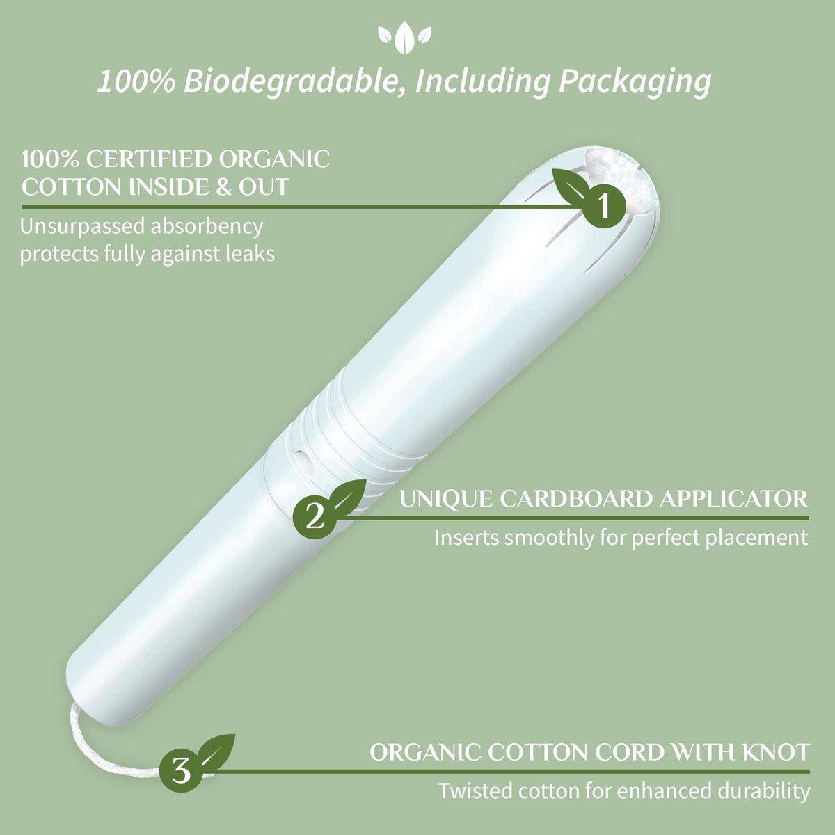 - 100% CERTIFIED ORGANIC COTTON - Organyc tampons are free from synthetic materials and are made with only organic cotton to give you unsurpassed absorbency and leak protection Soft and gentle organic cotton is pure, to respect you and your body