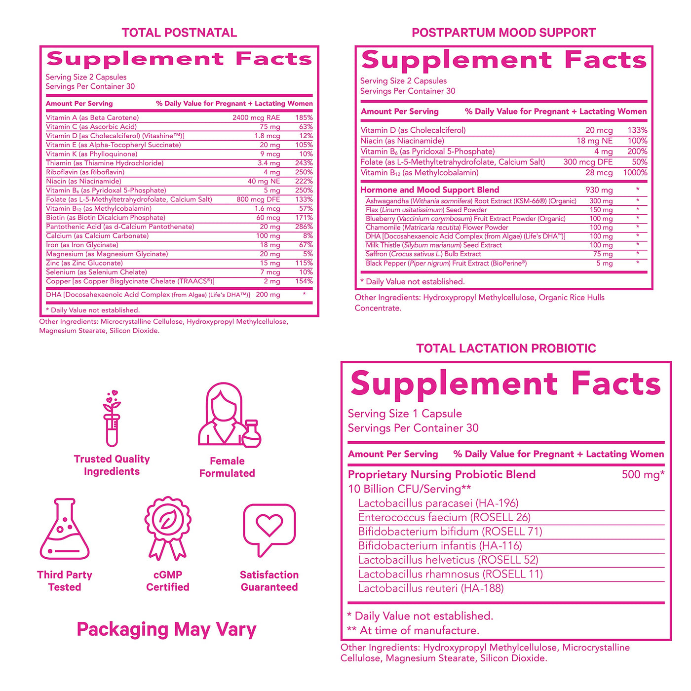 Pink Stork New Mom Necessities Bundle: Postnatal Vitamin with DHA and Folic Acid, Lactation Probiotic