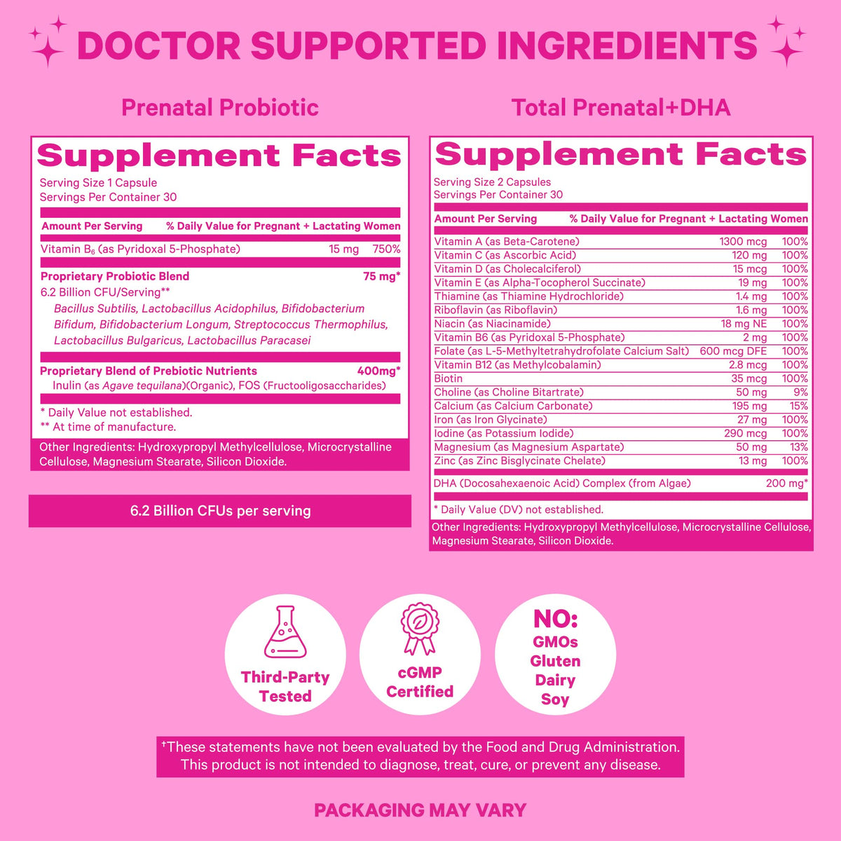 Pink Stork Prenatal Vitamin Duo: Prenatal Vitamins and Probiotics for Pregnant Women