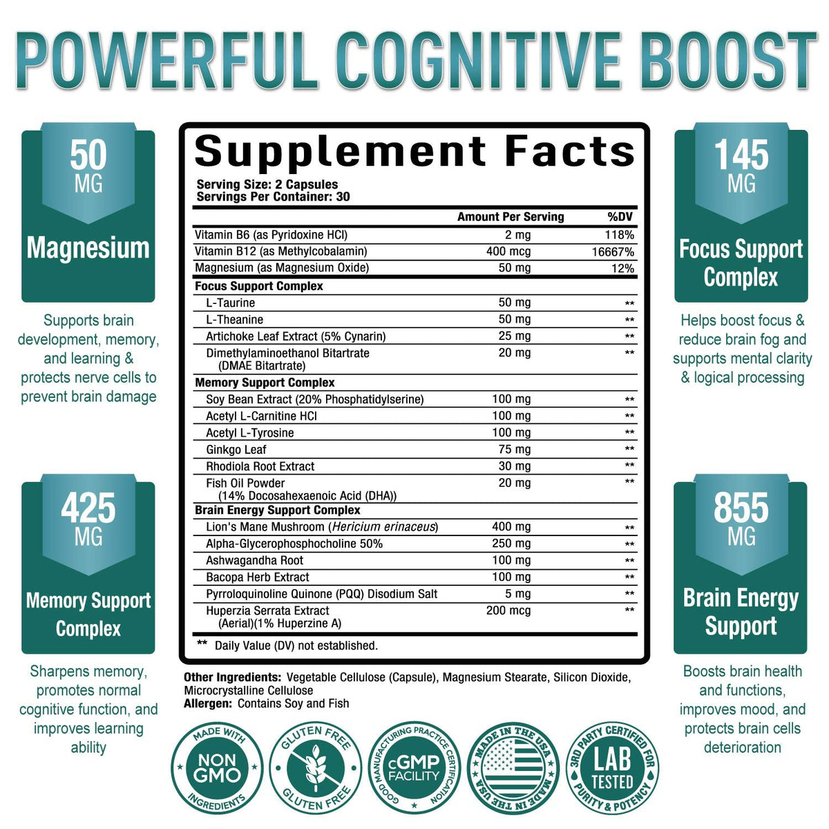 Premium Brain Supplement - Nootropic Brain Booster for Focus, Clarity, Improved Memory