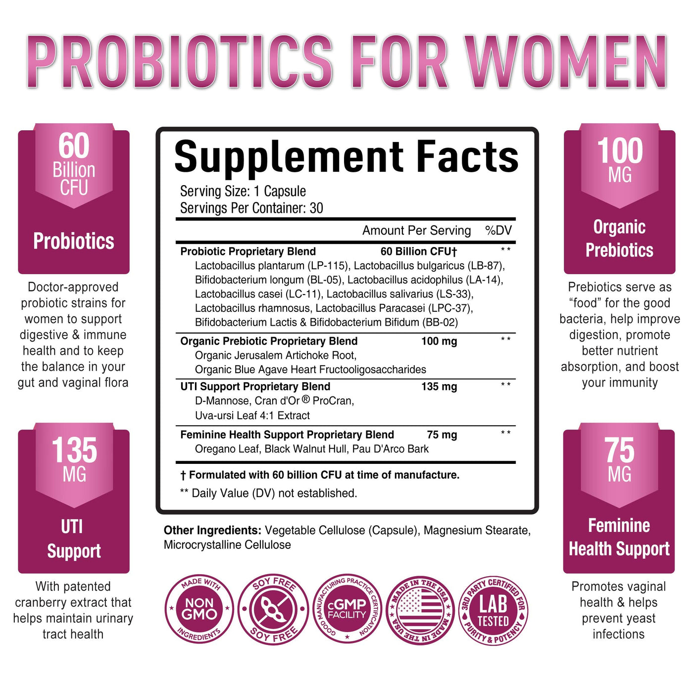 Premium Probiotics for Women - 60 Billion CFU, Dr. Formulated Prebiotics & Probiotics