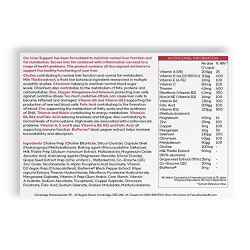 Prime Fifty Liver Support Supplements – 56 Vegan Capsules – Choline & Milk Thistle Supplements