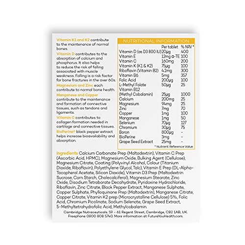 Prime Fifty Strong Bones Supplements – 28 Multivitamin Tablets with Calcium, Magnesium