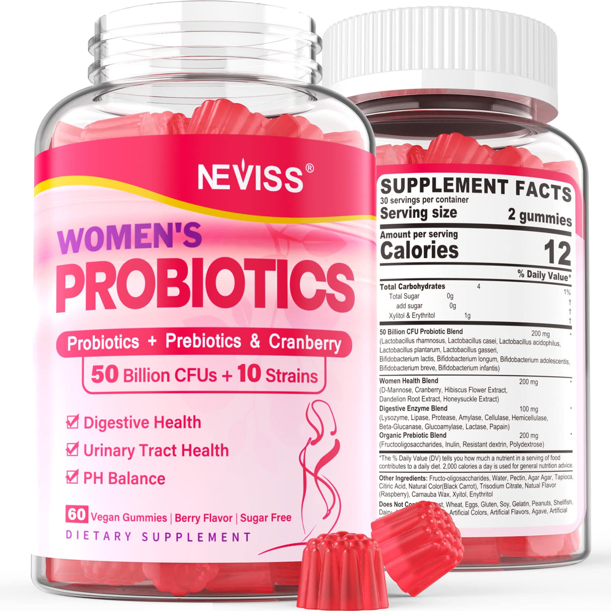 Probiotics for Women Gummies, Sugar Free Vaginal Probiotics 50 Billion CFU 10 Strains w/ Cranberry