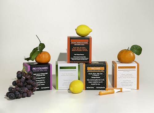 - 𝗡𝗔𝗧𝗨𝗥𝗔𝗟 𝗕𝗟𝗘𝗡𝗗 𝗖𝗢𝗟𝗟𝗔𝗚𝗘𝗡: Of highly absorbable 5000mg marine collagen drink to brighten skin complexion and boost collagen synthesis, Hyaluronic Amino Acid to keep the skin supple, red grape juice to promote collagen production and reduce collagen breakdown. Essential Vitamins B and C to restore rosy radiance and aid skin whitening.