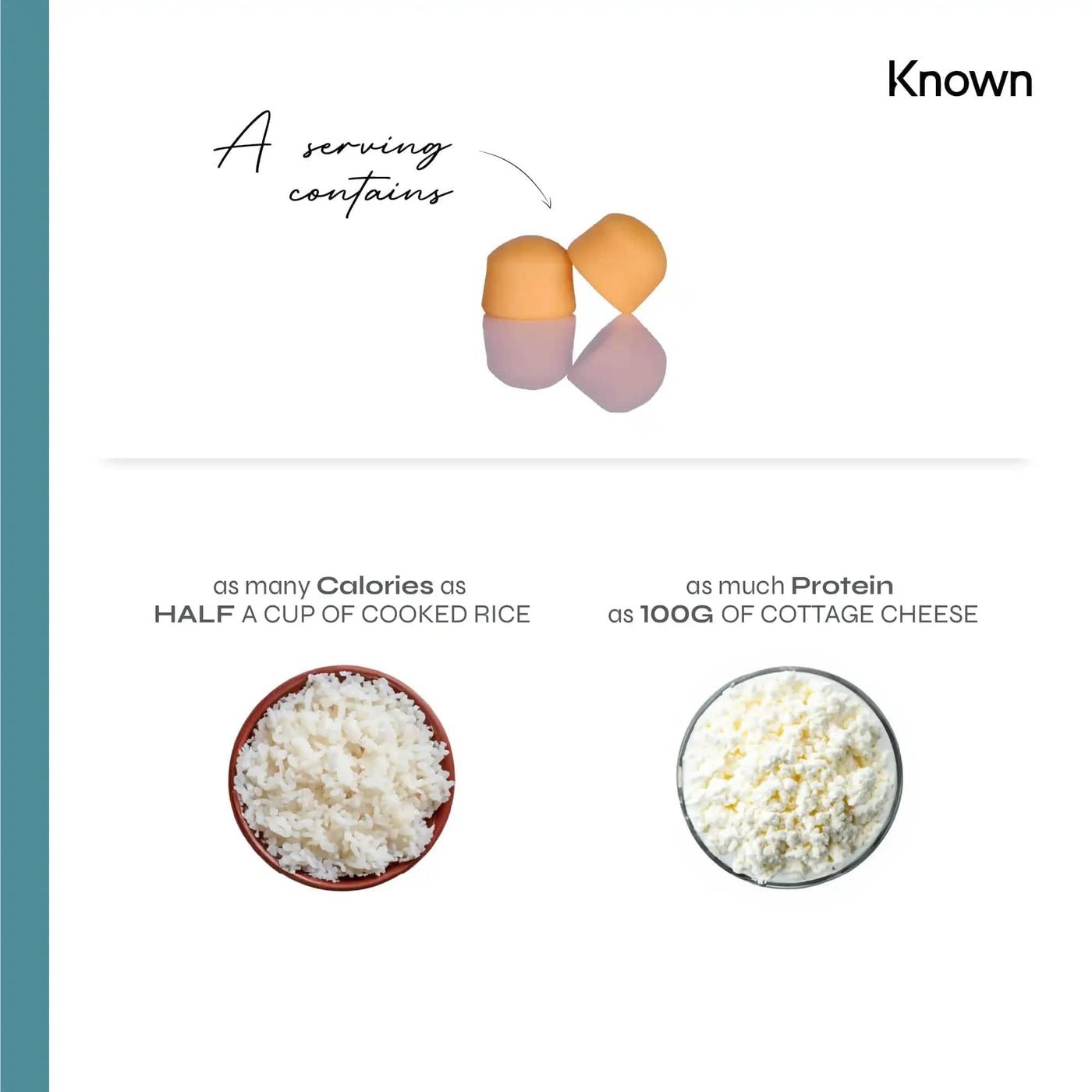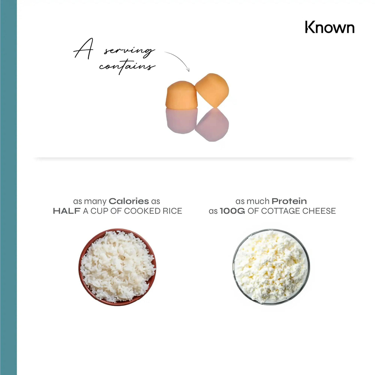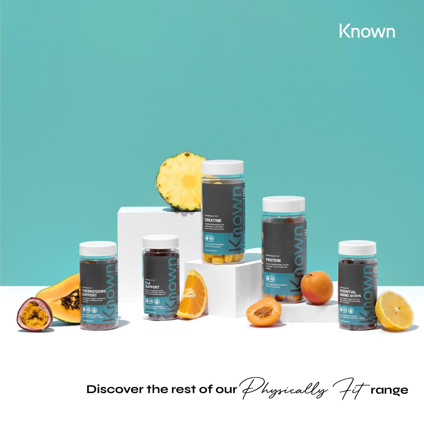 - ALWAYS TASTES GOOD. ALWAYS WORKS Unlike other supplements, Known’s Protein Gummies are a delicious alternative to bulky, hard-to-swallow tablets, capsules or strange-tasting powders. Each bottle contains 56 delicious gummies, free from artificial colours and flavours, just great tasting natural Apricot flavour gummies formulated by healthcare professionals.