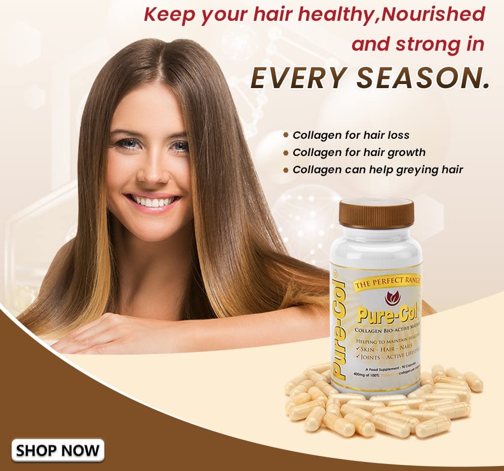 Pure-COL Collagen 90 Capsules 400mg Bio-Active Matrix High Strength Collagen Tablets